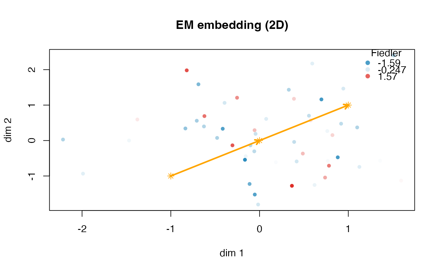 Numeric matrix of dimension \(n \times 2\) giving the embedding coordinates for observations.